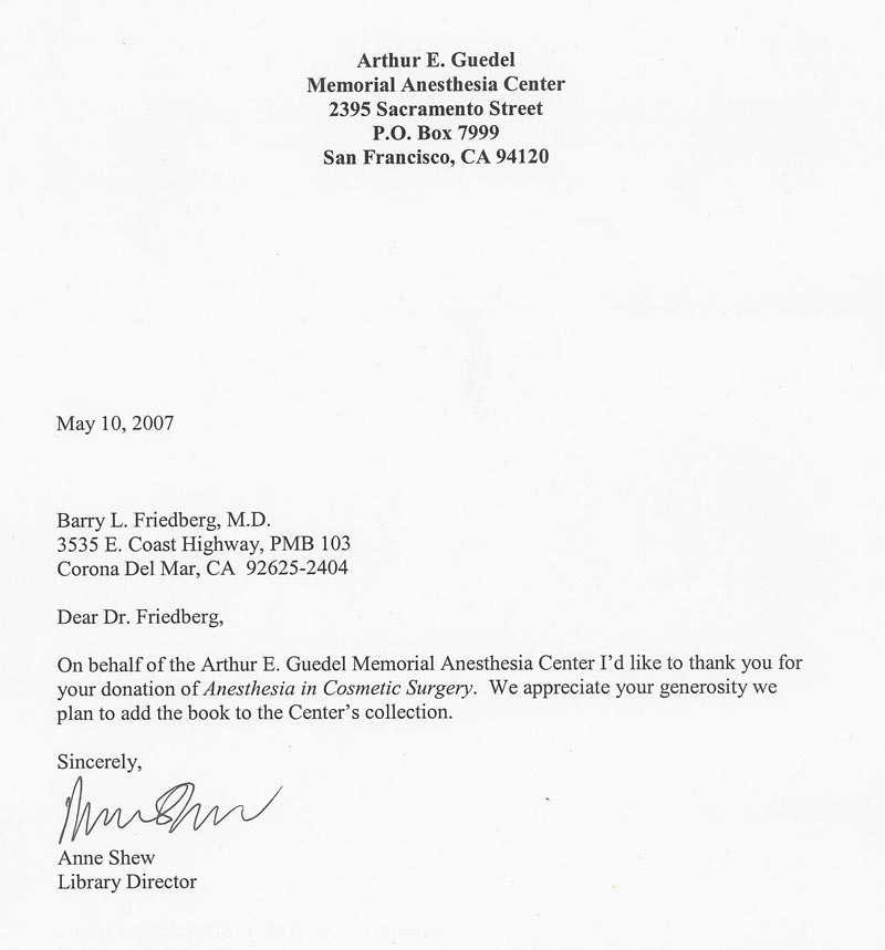 Book contribution to Arthur E. Guedel Memorial Anesthesia Center